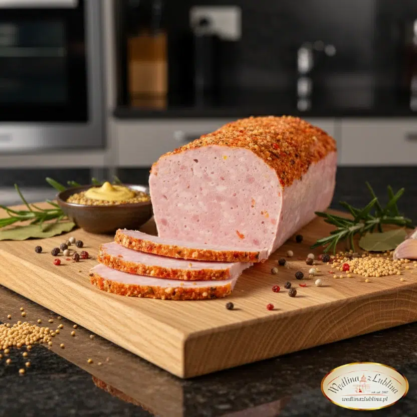 Klasyczna propozycja od marki Wędlina z Lublina, która łączy w sobie sprawdzone receptury z powolnym pieczeniem, co pozwala wydobyć głębię smaku. Nasza Pieczeń Rzymska charakteryzuje się kruchą strukturą i bogatym dodatkiem warzyw. Widoczne w przekroju drobne ślady marchwi i czerwonej papryki nie tylko zdobią produkt, ale nadają mu delikatnie słodkawy, domowy profil smakowy.