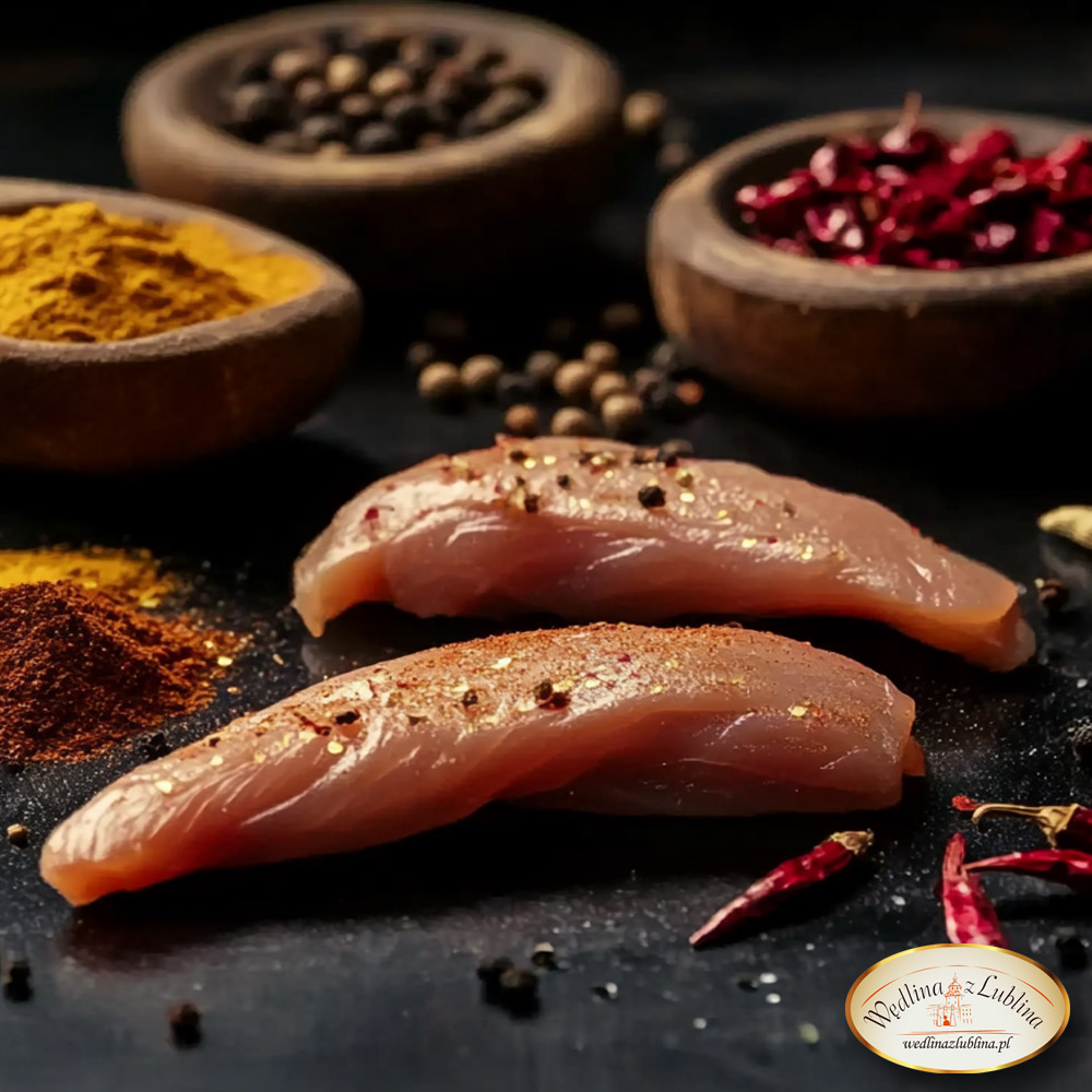 Delikatne kawałki mięsa drobiowego, pochodzące z piersi, idealne do smażenia, pieczenia, grillowania lub marynowania.