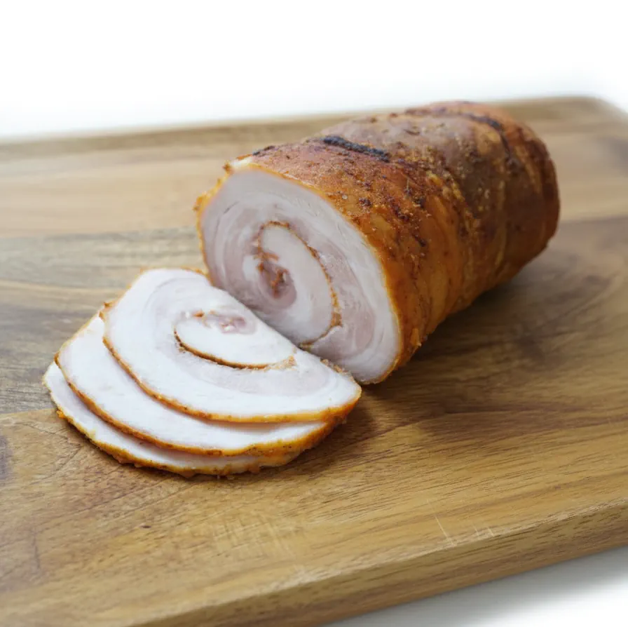 Poznaj wyjątkowy smak Rolady Boczkowej , mistrzostwo rzemiosła wędliniarskiego prosto z serca tradycji. Nasza rolada, stworzona z najwyższej jakości boczku, jest dowodem na to, że prawdziwa jakość nigdy nie wychodzi z mody. Każda rolada jest starannie przygotowywana, aby zapewnić niezapomniane doznania smakowe, z idealnym połączeniem delikatności mięsa i intensywności przypraw. Wędzona nad naturalnym dymem.