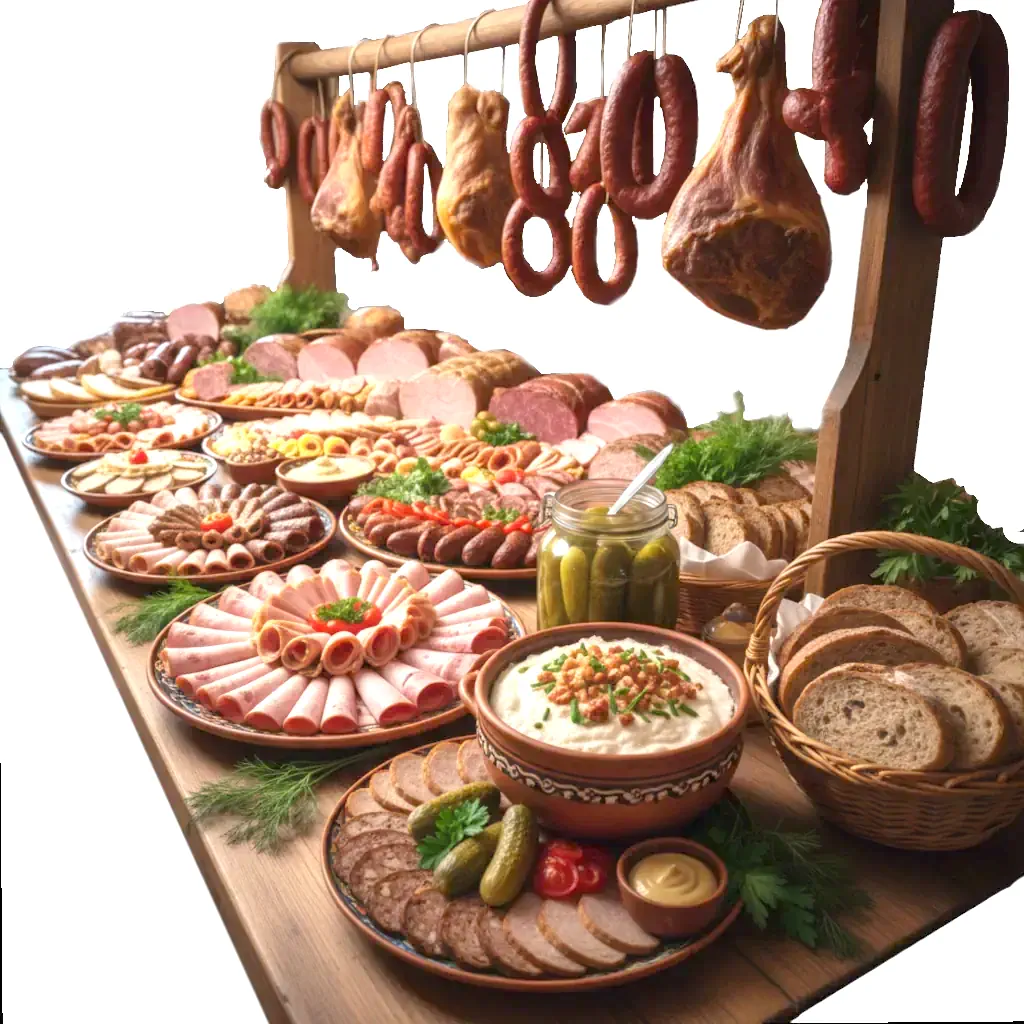 Zestaw 6 kg tradycyjnych wędlin w plasterkach oraz tradycyjnych dodatków – gotowy do podania. Idealny na wesela, jubileusze i imprezy okolicznościowe. Smak tradycji bez zbędnego przygotowania!